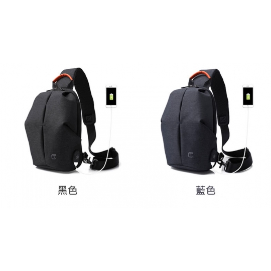 單肩USB胸前斜背包,簡約設計,肩帶加襯設計!實用高檔!
