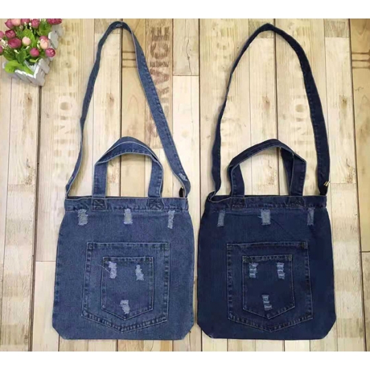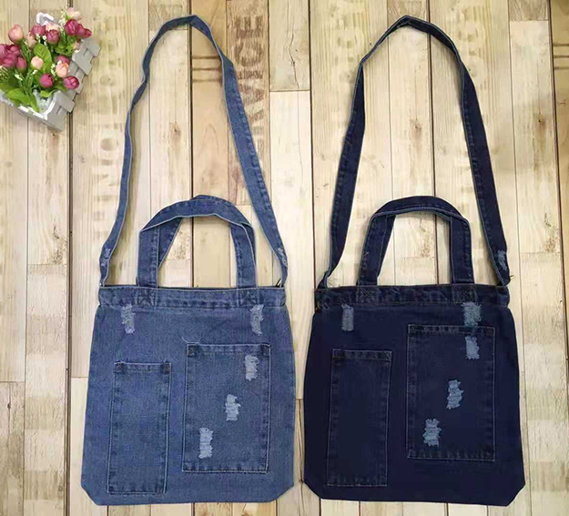 流行實用牛仔布包,尺寸眾多,數百種款式輪流生產,